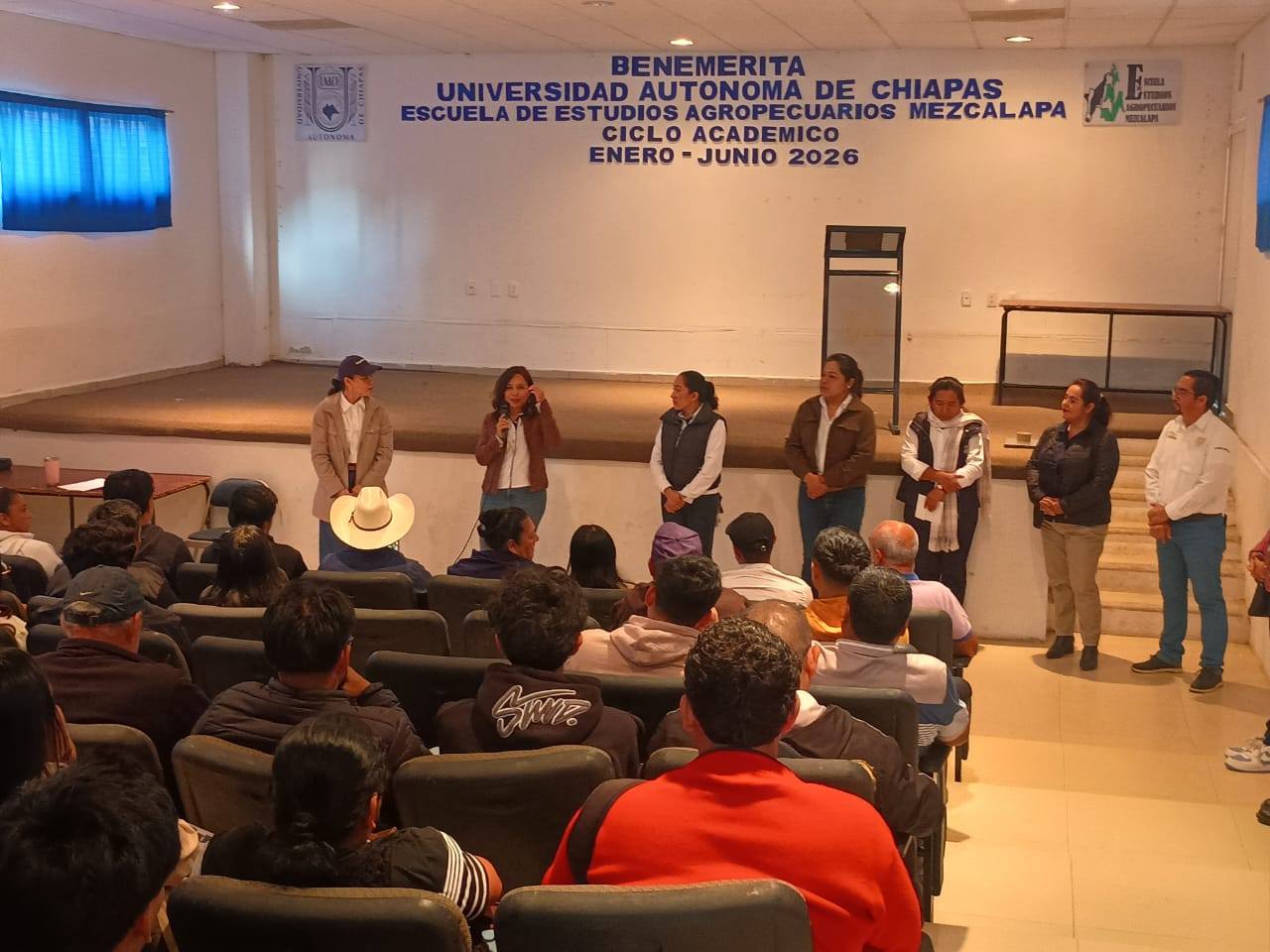 Se llevó a cabo la reunión de bienvenida con padres de familia de estudiantes de nuevo ingreso a las licenciaturas en Medicina Veterinaria y Zootecnia e Ingeniero Agrónomo, marcando el inicio del ciclo escolar enero–junio 2026, con el objetivo de fortalecer la comunicación y el acompañamiento en esta nueva etapa académica.