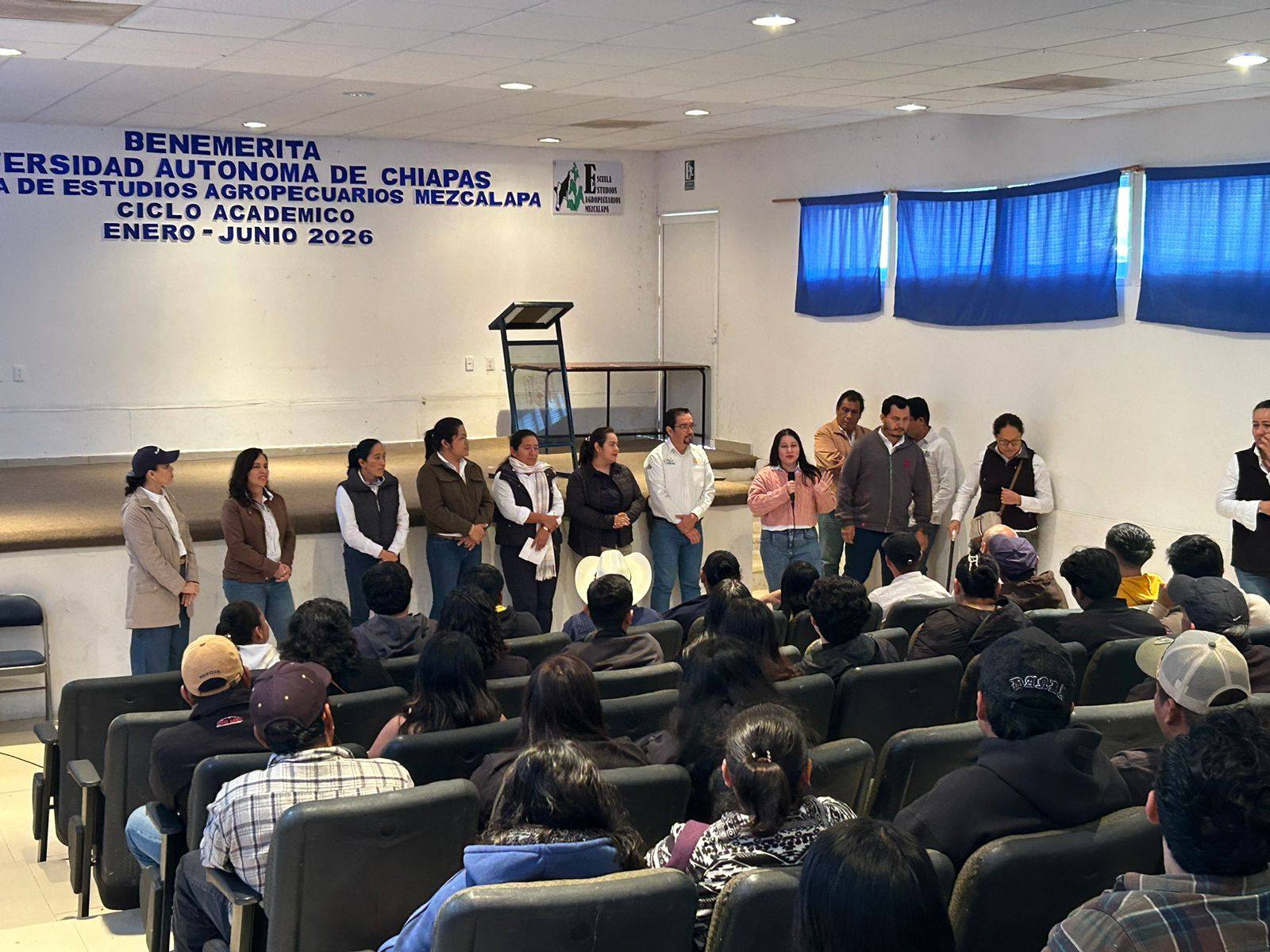 Se llevó a cabo la reunión de bienvenida con padres de familia de estudiantes de nuevo ingreso a las licenciaturas en Medicina Veterinaria y Zootecnia e Ingeniero Agrónomo, marcando el inicio del ciclo escolar enero–junio 2026, con el objetivo de fortalecer la comunicación y el acompañamiento en esta nueva etapa académica.